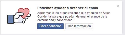 Al ingresar a la red social, aparece un mensaje que indica «Podemos ayudar a detener el ébola» y se invita a dar apoyo a las organizaciones que trabajan en África Occidental.