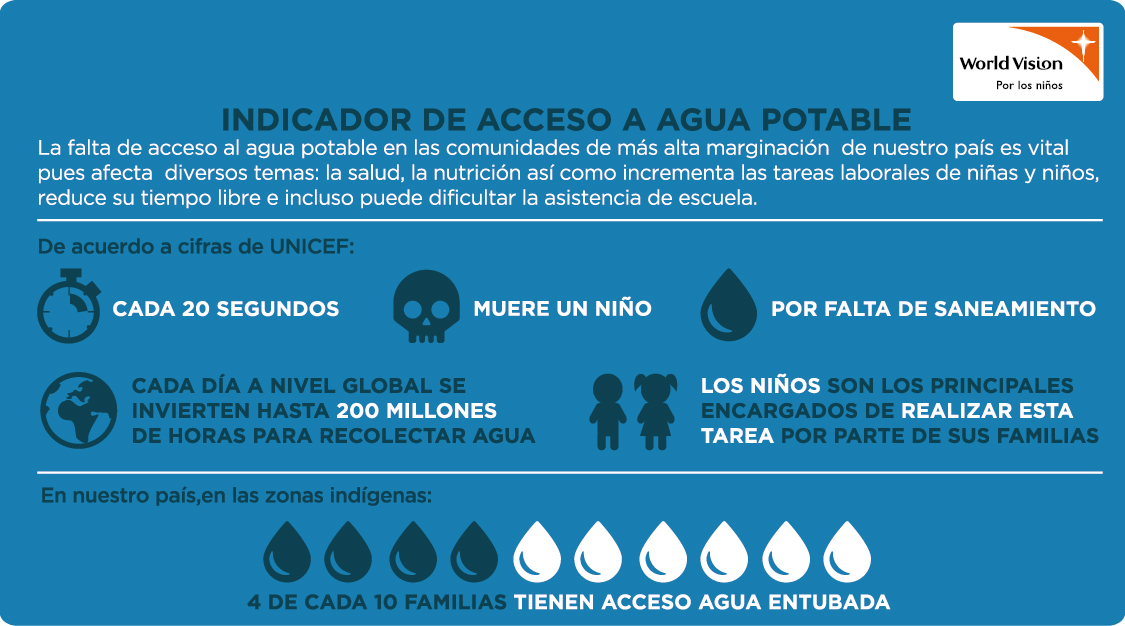 aguaRespecto al acceso al agua, líquido vital y motor para sobrevivir, en las comunidades más vulnerables, World Vision apoyó a 4 mil 602 familias de 6 estados de la República en el uso eficiente de agua y saneamiento, y monitoreó el