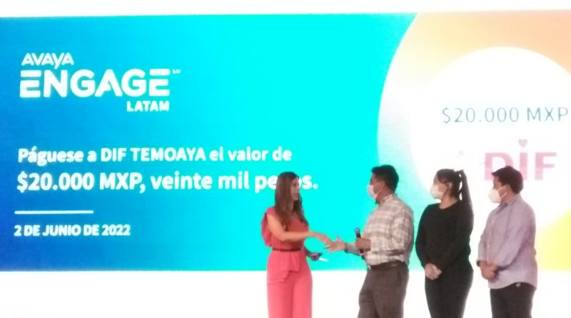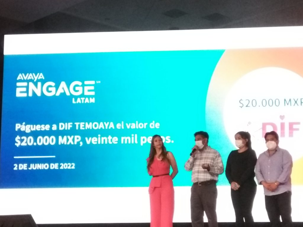 Maggie Bautista, directora de Marketing de Avaya, entregó un cheque por 20 mil pesos al DIF de Temoaya, una de las organizaciones apoyadas como parte del Avaya Engage 2022.