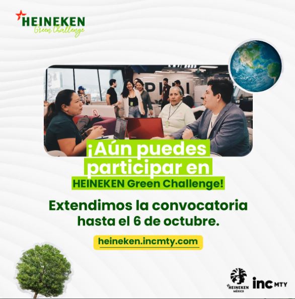 La séptima edición del Heineken Green Challenge, iniciativa socio ambiental de Heineken México e incMTY anuncian la ampliación de su convocatoria, debido al gran interés que han manifestado emprendedores de todo el país así los interesados tendrán la oportunidad de registrarse en la plataforma hasta el 6 de octubre.