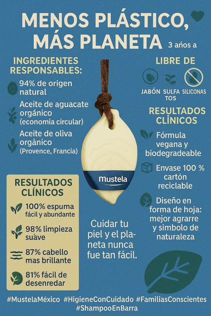 Para los consumidores que buscan un shampoo que no genere contaminantes desde el envase y que su fórmula sea de origen natural y no maltrate el cabello, Mustela dio a conocer un produto en barra para cuerpo y cabello.