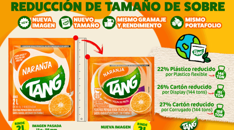 Tang anunció nuevos empaques que representan la reducción de 22% en el uso de plásticos y 26% de cartón gracias a un rediseño impulsado por el área de Investigación y Desarrollo de la compañía.